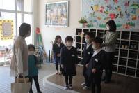 まずは、1・2年生が、玄関で出迎えました