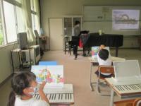 1・2年生の3人は、先生のピアノに合わせて、何度も練習していました。