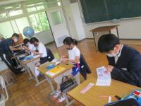 5年生は白地図上に主な山脈や平地、川などをまとめたり、お互いに問題を出しながら、「どのあたりにある、どんな特徴がある」と意見交換しながら、自分たちで学習を進めていました。